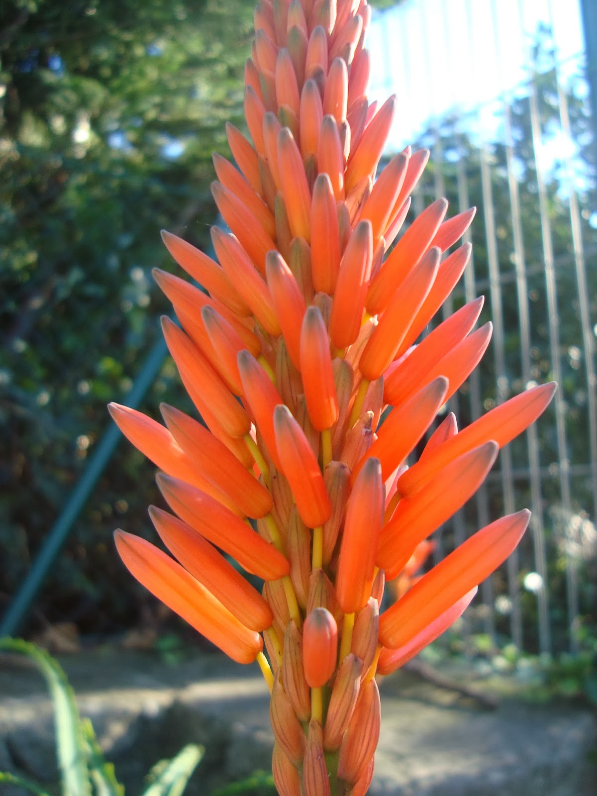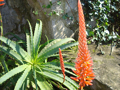 Las flores son de lo más llamativo, tubulares en color naranja-rojizo que al final del tallo surgen de una roseta.