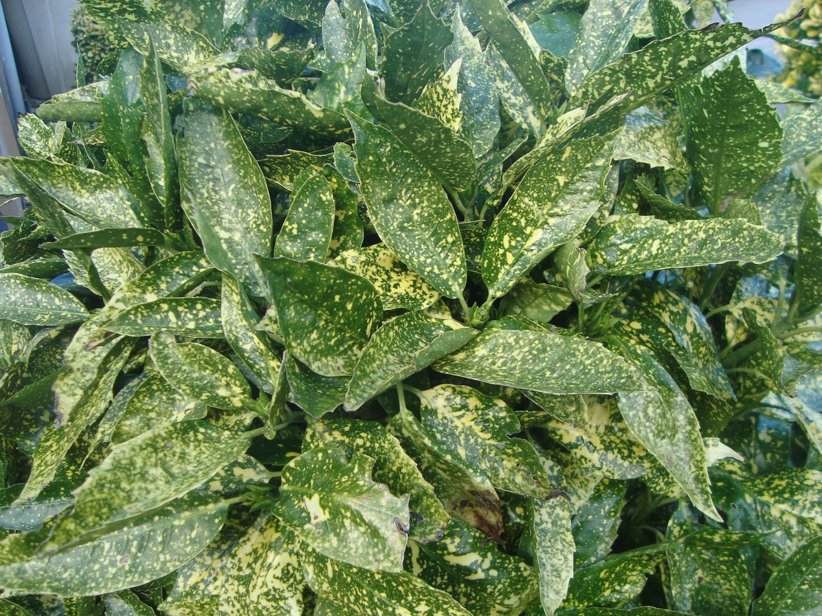 Arbusto de hoja perenne originario de china, Japón etc., de hojas ovaladas con manchas amarillas según la variedad, conviene plantarlo entre sol y sombra, con humedad ambiental ya que tolera mal los ambientes muy secos.
