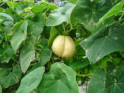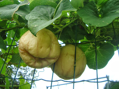 Esta curiosa “ patata “ la he encontrado en el huerto de unos amigos, creo que se llama: Chayote, cidra, papa de pobre, tayota, chuchú y seguro que otros nombres más, dependiendo de los países donde se cultiva. Se trata de una enredadera que necesita de un soporte para ir enredando sus ramas al crecer, los que no estamos acostumbrados a verlas nos llama la atención, al contrario de “ nuestras patatas “ que están enterradas en la tierra, son familia de las “ Curcubitáceas “ y se dan en países como: Brasil, Honduras, Guatemala, Filipinas, Argentina, México etc… dan bastantes frutos y son de bastante tamaño, sus hojas se parecen a las de la planta del pepino y los frutos cubiertos de “ pequeñas espinitas “ verdosos y al madurar de un color amarillento, parece que toda ella es comestible por lo que me han contado y se plantan a pleno sol en terrenos ricos en nutrientes y húmedos.