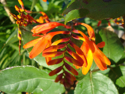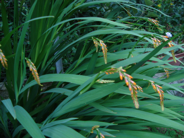 La CROSCOMIA es familia de las Iridáceas, crece en los pastizales de la Provincia del Cabo, Sudáfrica, se la conoce también como: Vara de San José o Montbretia, entre ellas, cruzándolas se han producido híbridos como la denominada » Lucifer » en un rojo fuerte, fue un jardinero británico llamado Alan Bloom quien logró este híbrido.