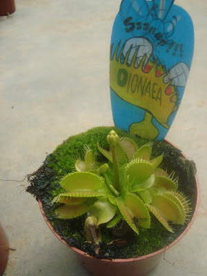 Llamada atrapamoscas y familia de las Droseraceae crecen a nivel del suelo, del rizoma salen las hojas en forma redonda con dos lóbulos que se cierran al menor contacto atrapando a los pequeños insectos.