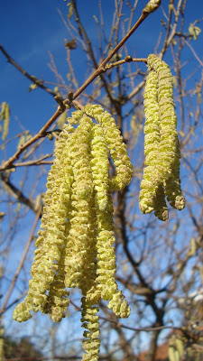 En el mes de febrero forma sus características inflorescencias, llamadas “amentos” o flores masculinas, alargados y coloreados en algunas especies que no serán fértiles hasta la primavera cuando se abrirán.