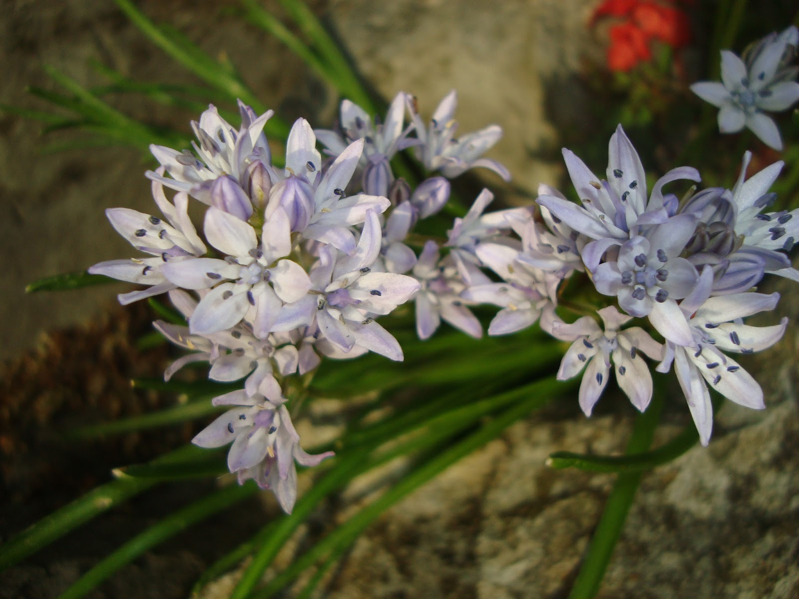 Familia de las Liliaceae la he encontrado en la rendija de una roca, es común en zonas costeras, aunque es la primera vez que la veo, sus florecillas en un azul violeta tienen 6 pétalos formando racimos.