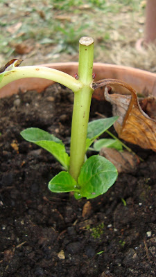 La multiplicación de las hortensias es fácil, al final del verano, agosto-septiembre se cortan extremos de ramas laterales crecidas este año pero sin flores, se quitan las hojas de la base y se plantan en turba de cultivo, este de la foto ya ha arraigado lo he tenido en el tiesto debajo de un nogal con humedad pero sin encharcar, en un mes han empezado a salir hojas nuevas, hay que mantenerlos en un lugar fresco, lo protegeré de las heladas este invierno y plantaré en la próxima primavera.