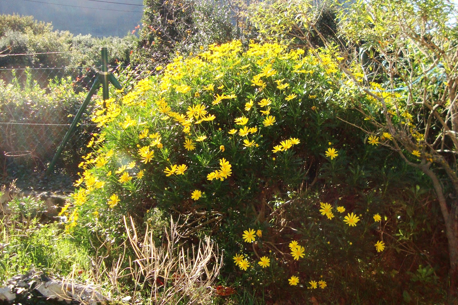 Arbusto muy cultivado en jardines pertenece a la familia de las asteráceas procede del Cabo en el Sureste de Sudáfrica normalmente crece en climas templados, pero también en el norte y en la costa crece sin problemas, sus hojas verde-grisáceas contrastan con el vivo amarillo de sus flores que dan color en los días lluviosos del invierno hasta bien entrada la primavera.