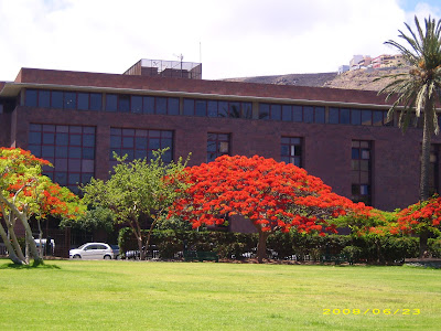 Y no me extraña, porque eso me pasó a mi cuando entré en ese parque de la Gomera y vi semejante espectáculo aquel día de junio, unos árboles bastante grandes y repletos de flores de color rojo.