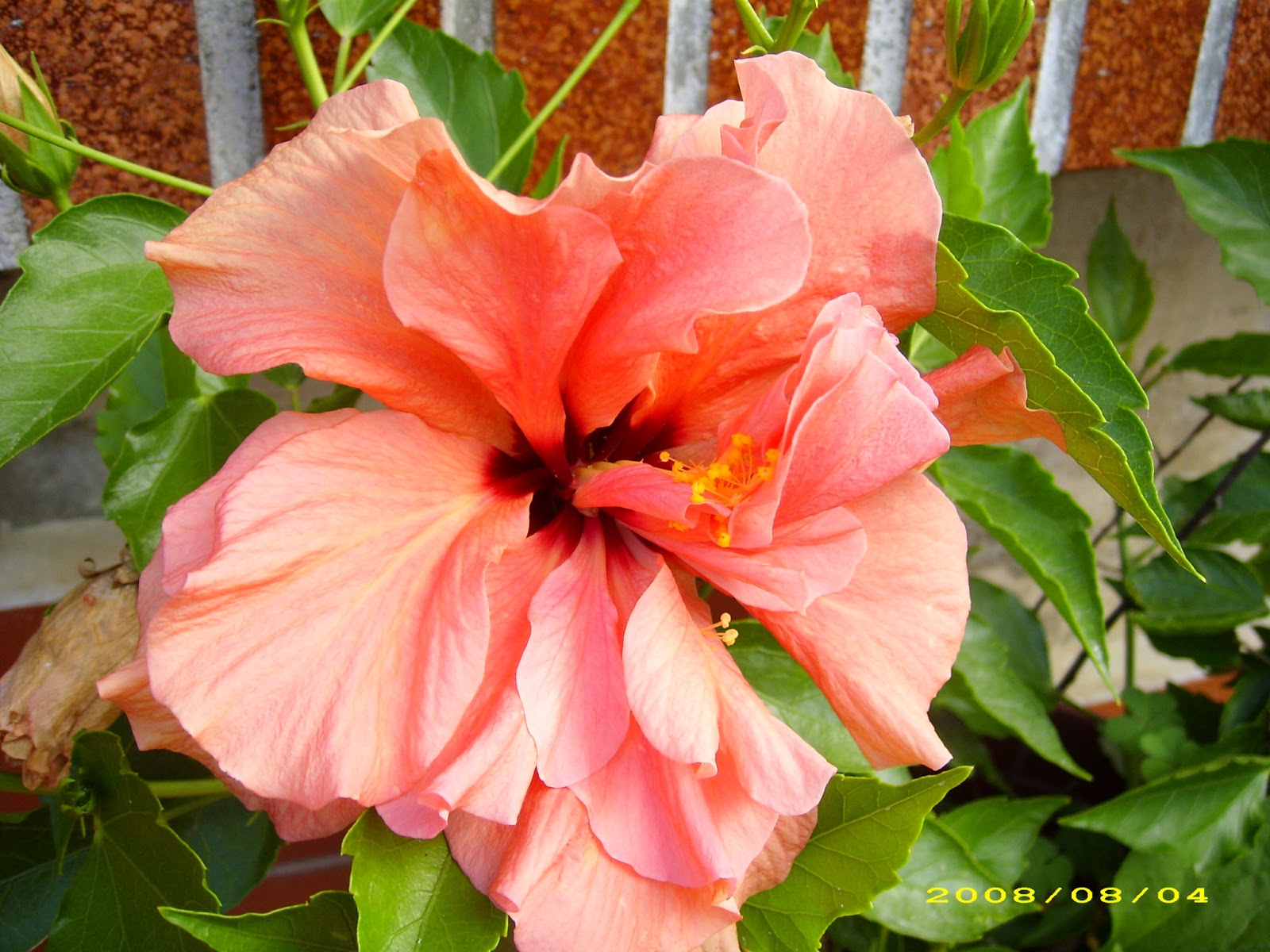 Posiblemente proceda del Sur de China, de la familia de las Malváceas, sus flores infundibuliformes, muy abiertas, llegan alcanzar hasta 15cm. y de ellas sobresalen los filamentos.