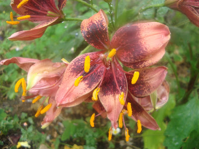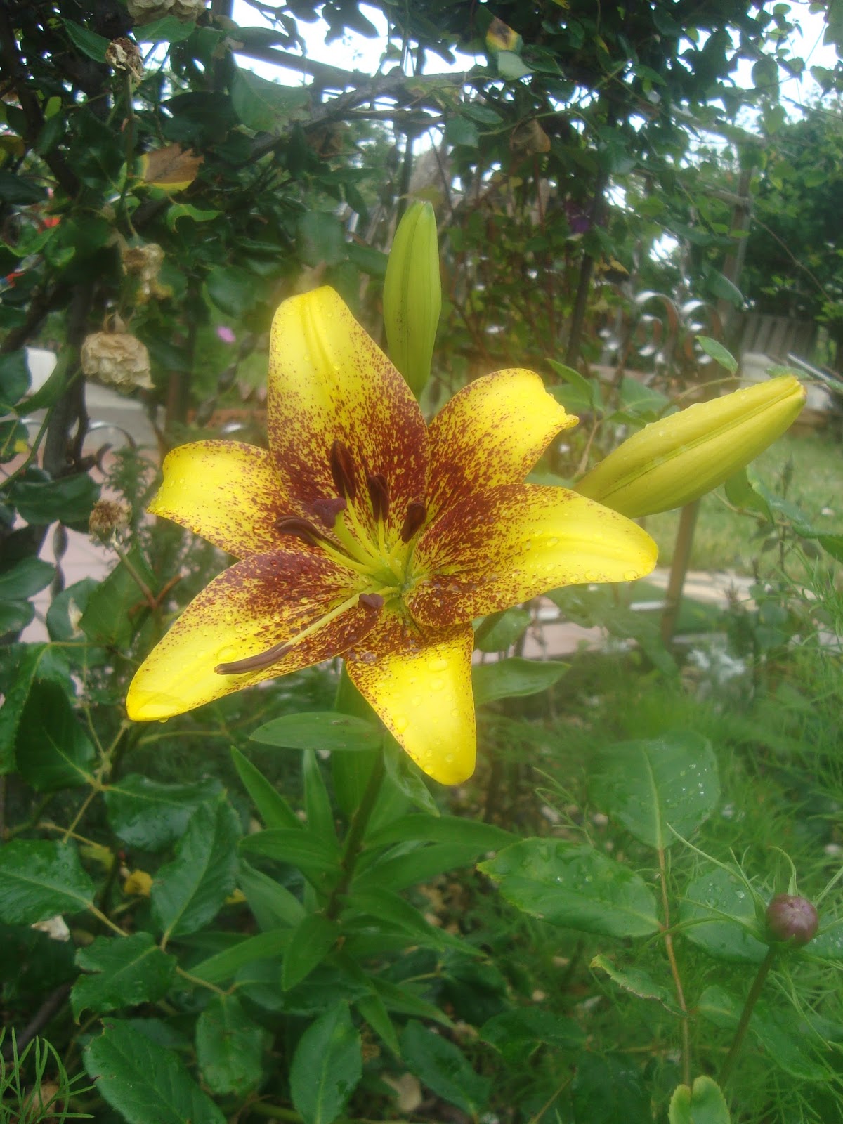 Familia de las Liláceas son lirios asiáticos cultivados desde antiguo allí, sus grandes flores abiertas pueden durar 2 ó 3 semanas, se plantan en marzo y empiezan a florecer en junio, tienen una mezcla de colores increíbles, los planté debajo de un arco de rosas blancas y de momento me ha florecido el amarillo, es conveniente protegerlos de los vientos que los pueden partir en y tierra drenada y bien abonada. Como todos los lirios si los plantamos en grupos en parterres o en zonas de paso no pasan desapercibidos.