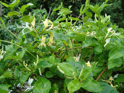 Planta arbustiva siempre verde de porte trepador, se la conoce también como “ rosa de miel “ por el olor que desprenden sus flores.