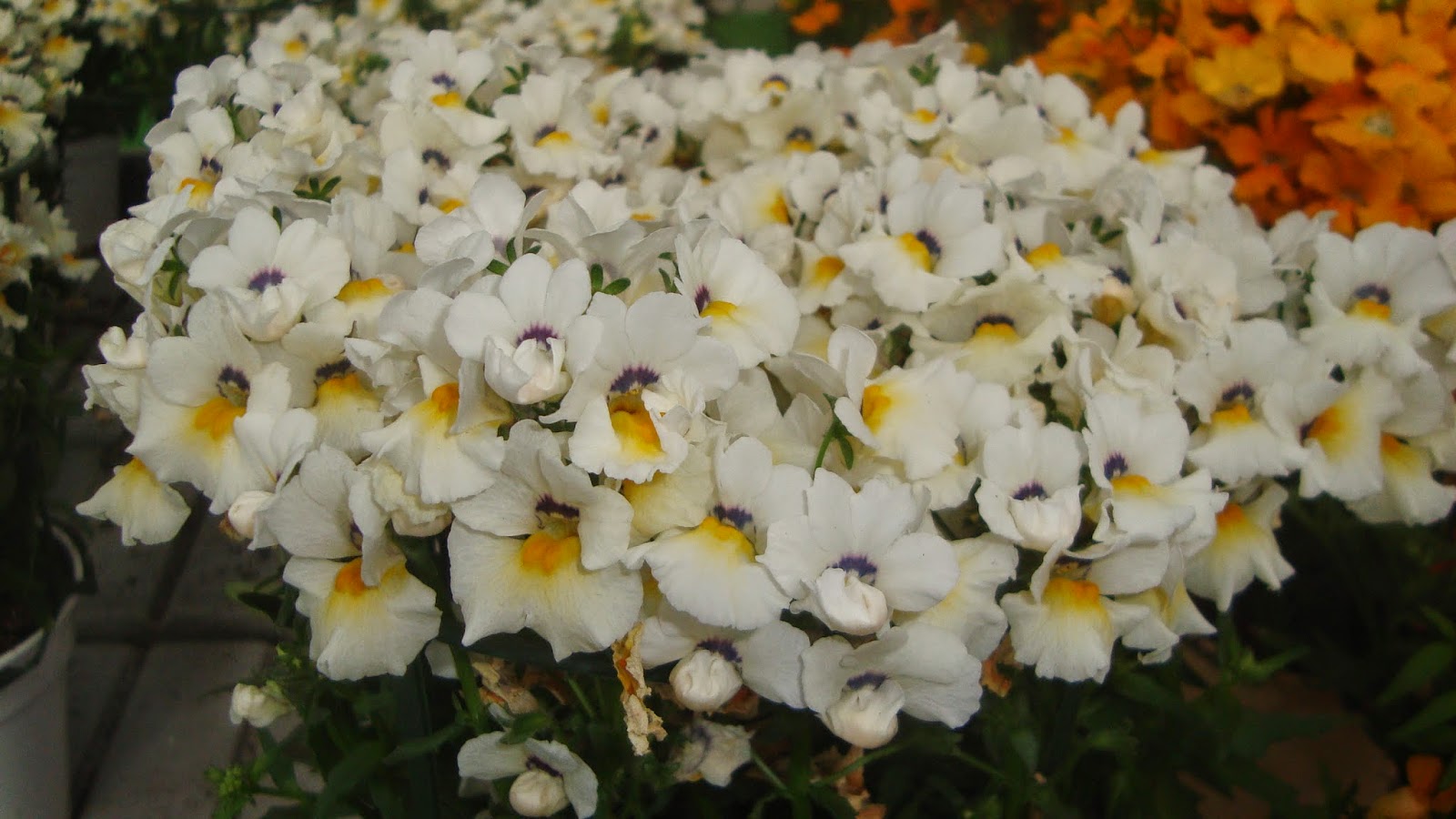 Las hojas en forma de lanza, pequeñas, son lo menos importante en la Nemesia, tiene tal cantidad de flores que casi no se ven. ¿ Los colores ¿ prácticamente todos, solos, mezclados entre sí, un color en los pétalos superiores y otro en su interior.