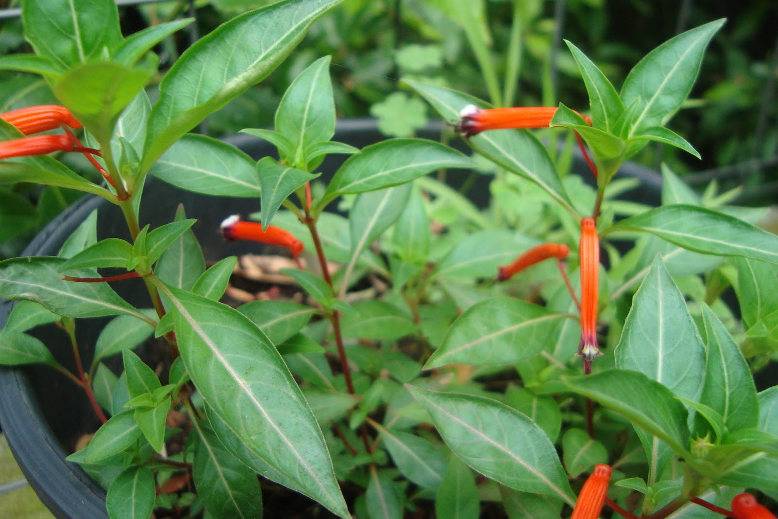 Familia de las Litraceae procede de México, tiene varios nombres comunes: Fosforito, Hipanto coloreado, flor del tabaco, sus hojas son simples y sus flores solitarias tubulares y brillantes, cada flor, termina con un borde blanco y dos pequeños pétalos de color púrpura-negro, florece desde la primavera hasta el otoño, crece bien en suelos fértiles en semi sombra y resiste mal el frío.