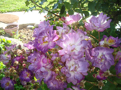 También llamado “ Manto de San José “, se trata de un rosal arbustivo que si lo plantamos junto a un muro puede llegar a trepar, el mío, está subiendo por un acebo que tiene al lado liándose por sus ramas.