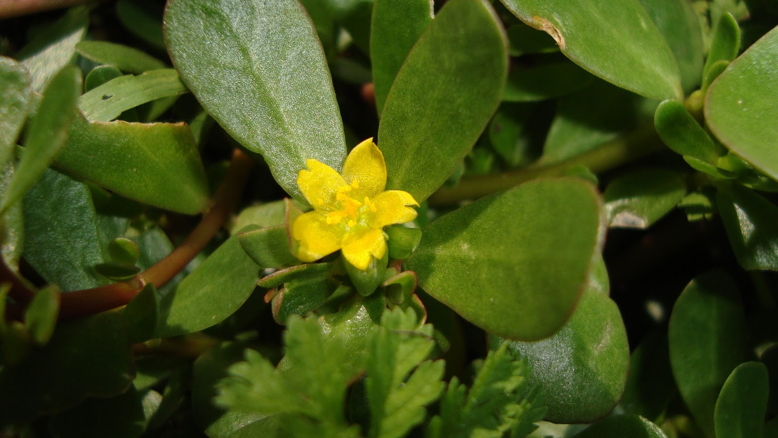 Suculenta y rastrera, ramificada de tallos rojizos y sávia transparente, flores amarillas sésiles de 5 pétalos y los frutos que contienen muchas semillas oscuras.